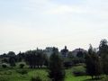 Linia turystyczna przed stacją Radzieje i przejazdem kolejowym na drodze.Widok od strony Kętrzyna.