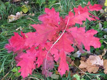 liście dębu czerwonego rzadkość we wsi dominuje dąb szypułkowy (Żarki Średnie)