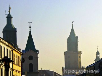 Lublin, cztery wieże. Od lewej: Ratusza, Kościoła Rzymskokatolickiego pw. Świętego Ducha, wieża Trynitarska, jedna z wież katedry - foto. Krzysztof Goleń