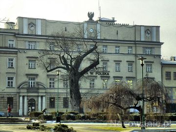 Lublin, poczta główna przy placu litewskim. Przed budynkiem nieistniejący już "baobab" (tak nazywano olchę ) - foto. Krzysztof Goleń (Lublin)
