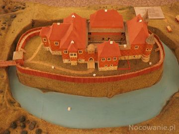 makieta - prezentowana na drodze zwiedzania zamku, tu jeszcze kaplica po wjeździe przez zwodzony most, później spalona i nie odtworzona. (Dębno)