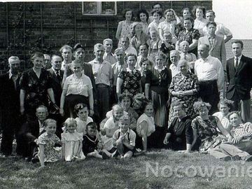 Mieszkańcy Nowej Swidnicy przed domem mego stryjka Wincentego Lang-pożegnanie emigrował do Kanady to pewnie maj,czerwiec 1958 rok (Nowa Świdnica)