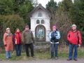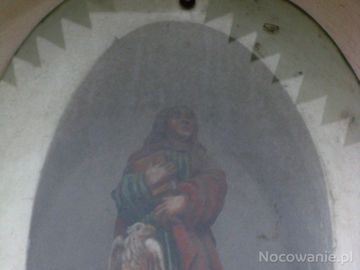miniaturowa rzeźba św. Pawła i rzeźbiony orzeł - pewnie z godła Polski, może nauki w/w wzywać będą - stwarzać nadzieję - do niepodległości odzyskania, może by dążenia poparte być mogły Kościoła naukami a ich symbolem jest ten święty ? - w górnej - na szczycie jakby - płycinie kapliczki przy drodze na Podgaj.