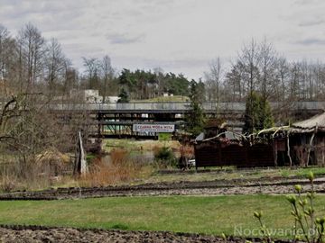 Most w ulicy Mostowej i baner powitalny uczestników spływów kajakowych Wdą (Czarna Woda)