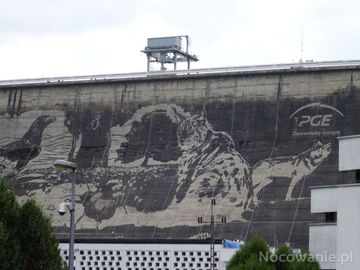 mural - na ścianie frontowej zapory wodnej od strony śluz, dzieło artystów wolontariuszy zaprezentowane już przed sezonem turystycznym w czerwcu br. (Solina)