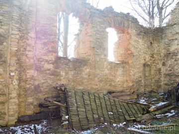 na cerkwi dach był kalenicowy, trójspadowy, z wieżyczką na sygnaturkę, ośmioboczną, baniastą z latarnią, kryty gontem - a n/z trochę gontu z dachowej połaci i resztki więźby.