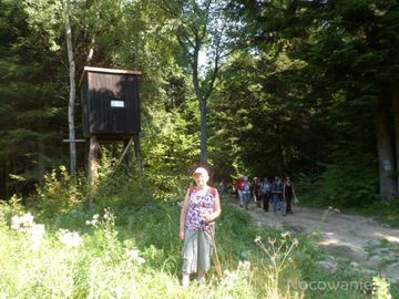 na drzewie przy drodze po prawej są naniesione oznaczenia szlaku i ścieżki edukacyjnej a tu : n/z przed amboną myśliwską w narożniku poletka ogryzowego.