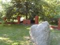 na murku tabliczka a napis objaśnia, iż tu jest lipa - pod którą modlił się późniejszy święty - Stanisław Kostka. To w niszy ogrodzenia placu przykościelnego. (Rostkowo)