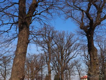 na obrzeżach podworskiego parku - a tam pomnikowe okazy : 400 - 500 letnie dęby.
