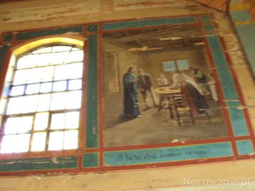 Na parapecie chóru namalowano Jezusa w osobie Łemka siejącego zboże, na lewej ścianie w babińcu obok okna - j/w - polichromia przedstawiająca Jezusa w chacie łe (Turzańsk)
