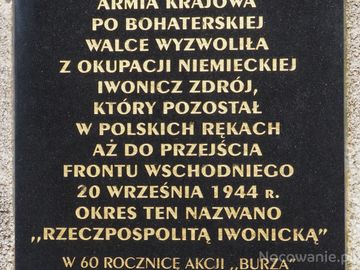 na postumencie pomnika tablica - dla upamiętnienia Akcji "Burza" z lipca 1944r. (Iwonicz Zdrój)