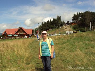 na przełęczy Maćkówki - 690m npm, z widokiem na górną stację wyciągu krzesełkowego na g. Palenicę.