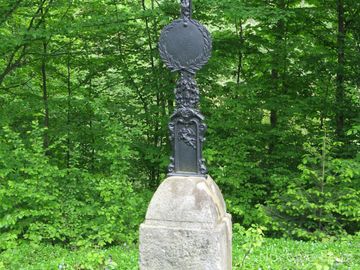 na przycerkiewnym cmentarzu, w 2008 roku cmentarz oczyszczono. Pośrodku ustawiono nagrobek piaskowcowy z żeliwnym krzyżem z Chrystusem Ukrzyżowanym i poniżej (Rozpucie)