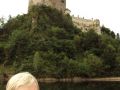 na przystani - przed zejściem trapem na pokład statku "Harnaś" - w oddali zamek w Czorsztynie. Krzyczałem żeby zeszła z kadru ale żerdzie przeszkadzały... (Niedzica)
