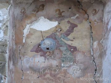 Na ścianach widoczne są jeszcze freski powstałe na pocz. XVIII wieku - powyżej ołtarza głównego, w zamurowanym oknie: Bóg Ojciec.