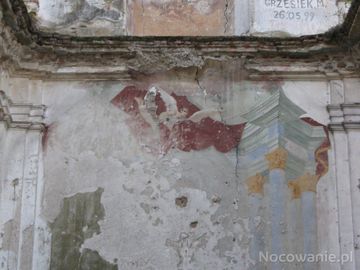 Na ścianach widoczne są jeszcze freski powstałe na pocz. XVIII wieku - ołtarz główny: z postaciami śś. Joachima i Anny oraz kotarą unoszoną przez anioły, w polu głównym - orzeł polski, domalowany po opuszczeniu kościoła.
