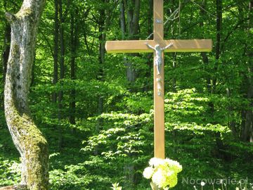 na skraju lasu / poboczu drogi za rowem, po lewej za wsią w kierunku m.Mrzygłód : krzyż, nowy, z cokolikiem i klęcznikiem betonowym - ślad wiary i kultury a przechodniów / przejezdnych uprasza o zdjęcie czapki, ukłon czy znak krzyża - pamiątka dziejów, świadek historii...