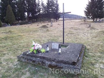 na starym cmentarzu przy cerkwi - ten nagrobek się zachował, ktoś pewnie dogląda, pamięta... Na polu cmentarnym - w tym sektorze - widzimy wzgórki trawiastą dar (Krościenko)
