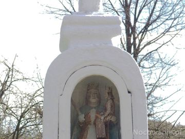 na straży ciszy i spokoju, życia pełnego poświęcenia i tradycji chrześcijańskich - czuwali święci z przydrożnych kapliczek, często wytwory a raczej dzieła twórców ludowych - to swoisty akcent krajobrazu wsi polskiej, wyraz czci, wdzięczności, oddania i pobożności mieszkańców. Maryja z Dzieciątkiem - z koronami na głowach, Maryja - Królowa Polski trzyma w ręce berło.