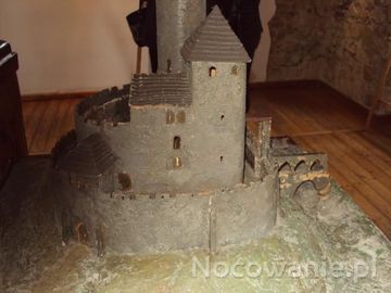na tarasie wieży zamkowej prezentowana makieta - tu po prawej widoczna fosa, most i tędy prowadziło główne wejście do zamku, my dziś turystycznie korzystamy z bramy po lewej zwieńczonej basztą.