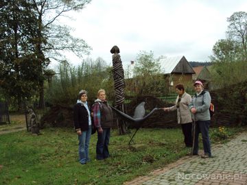 na terenie Uniwersytetu Ludowego - przy plenerowych eksponatach, położenie ośrodka kształcenia na skraju wioski wśród łąk, gór i plenerowej galerii rzeźb - jak nam akcentowano - sprzyja twórczej pracy i odnajdowaniu własnych dróg i realizacji pragnień. W bogaty świat technik opartych na pracy ludzkich rąk wprowadzają tu mistrzowie rzemiosła i artyści.