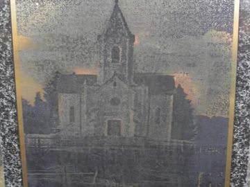 na tym wzgórzu wzniesiony był ewangelicki kościół - na wierzchowinie są czytelne resztki podmurówki, tu na płycie przedstawione zdjęcie archiwalne.