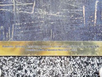na tym wzgórzu wzniesiony był ewangelicki kościół - na wierzchowinie są czytelne resztki podmurówki, tu na płycie przedstawione zdjęcie archiwalne zaś pod zdjęciem na osobnej listwie jest zamieszczony opis.