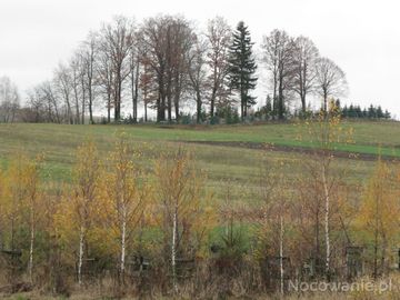na widokowym wzniesieniu: cmentarz greckokatolicki, grzebalny, zadbany, ogrodzony z bramą i furtką a w okolicy czyrykanie słychać - to głos wydawany przez zwołujące się kuropatwy.