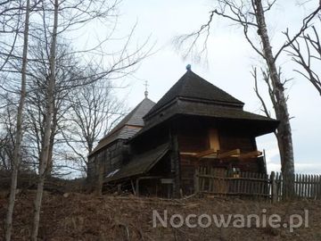 na wzgórzu - niegdyś w cieniu drzew - cerkiew greko-katolicka, perełka architektoniczna na Szlaku Architektury Drewnianej, doczekała się remontu. W elewacji frontowej widoczne są belki będące częścią niezachowanego przedsionka a kiedyś nad babińcem istniała kaplica św. Dymitra - niezwykle rzadko tak bywało,polecam galerię m.Dobra - tam bramę cerkiewną- i tam opisy.
