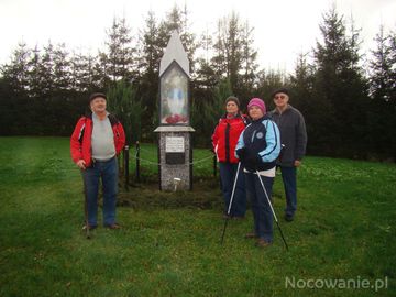na wzgórzu była cerkiew, filialna, pw. Soboru N.P.Marii, drewniana, zbudowana w 1802 roku, odnowiona i częściowo przebudowana w l. 1924-8, później opuszczona i w latach 80-tych XX wieku rozebrana, na zdjęciu: przed kapliczką wzniesioną w miejscu wspomnianej cerkwii