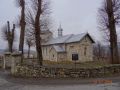 na wzgórzu cerkiewnym : kapliczka z figurką Matki Boskiej, ładna, "inna", ukwiecona, za nią widoczny stary mur okalający cerkiew. Dalej : widoczny nowy kościół.