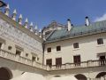 na zamkowym dziedzińcu - zamek zbudowany na przełomie XVI-XVII wieku, zachował prawie niezmienną sylwetkę. N/z widoczne przepiękne sgrafitta.