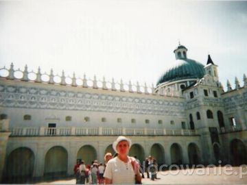 na zamkowym dziedzińcu - zamek zbudowany na przełomie XVI-XVII wieku, zachował prawie niezmienną sylwetkę. N/z widoczne przepiękne sgrafitta. (Krasiczyn)