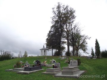 na zboczu wzgórza cerkiewnego : cmentarz a dalej dzwonnica, była też cerkiew drewniana, zbudowana w 1864r. - wyznawców obrządku greko-katolickiego po wojnie przesiedlono, cerkiew chyliła się ku ruinie i w 1968 roku została rozebrana.