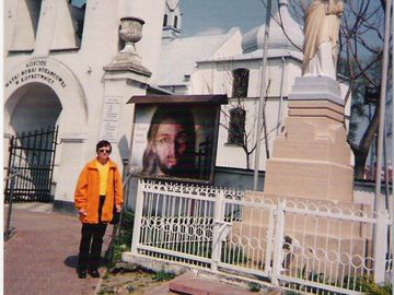 na zdjęciu: przed bramą główną kościoła Matki Bożej Różańcowej. Różaniec - nazwa modlitwy chrześcijańskiej, pierwotnie znanej pod nazwą Psałterza Najświętszej Maryi Panny.