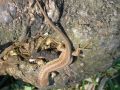 na zdjęciu: przed dworem Gostwickich, z 2-giej poł. XIX wieku, remontowany w latach 1952 i 1976, od 1952r. była w nim IV klasowa szkoła podstawowa. Murowany dworek zbudowany w miejscu dawnego, który spłonął w wyniku pożaru powstałego przy wypieku ciast wielkanocnych. Po lewej od dworku - bliżej potoku - w kwietniu kobierzec : zawilec gajowy żółty - rzadko występuje !