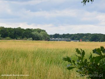 Nad Odrą. W dali widoczny most.