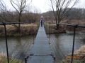 nad rzeką Sanoczek - kładka wisząca, solidnej konstrukcji, n/z po prawej pasmo Glinice - 393m npm. (Zabłotce)