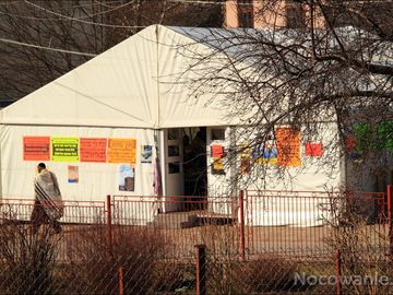 Namiot chasydów przed cmentarzem żydowskim w Leżajsku (Leżajsk)