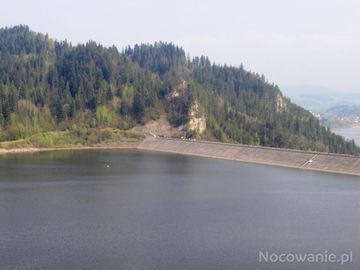 Niedzica Zamek nad jeziorem Czorsztyńskim - widok na brzeg jeziora Czorsztyńskiego przy tamie