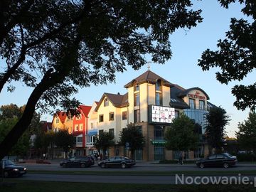 Nowe i nowsze zabudowania w mieście. Okolice Ronda Solidarnosci. (Lębork)