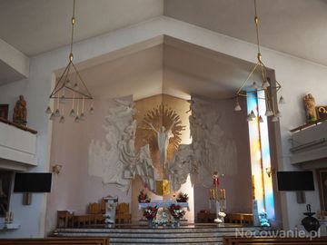 nowy kościół - nawa i ołtarz główny i obustronne galeryjki. (Iwonicz Zdrój)