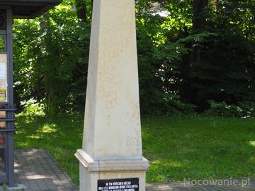 obelisk upamiętnia miejsce poświęcone - tu wzniesiono kaplicę zdrojową, później kościółek filialny - często bywało, że msze święte odprawiał ksiądz będący na turnusie - kuracjusz, tak też jest i dzisiaj w Szpitalu Uzdrowiskowym "Excelsior" - tam jest też kaplica, polecam zdjęcia i ich opisy - warto !