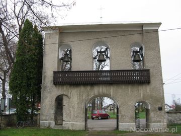 obok kościoła, w okalającym go murze, zachowała się dzwonnica parawanowa z 1841r., zwraca uwagę balustrada przy arkadach z dzwonami, od strony kościoła. Wiemy też, iż 14.04.1919r. na tej dzwonnicy zawieszono nowo odlany dzwon "Adam" ufundowany przez miejscowych parafian, w roku 1942 został zarekwirowany przez władze niemieckie i do kościoła już nie wrócił.