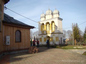 obok świątyni stoi dzwonnica murowana, trójkopułowa, z 1905 roku, z przejściem w dolnej środkowej arkadzie, po prawej od tej arkady - figura św. Andrzeja, przeniesiona z bramy cmentarnej.