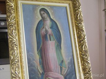 OBRAZ MATKI BOŻEJ KRÓLOWEJ W KOŚCIELE W KWIATONIU PO RENOWACJI KONSERWATORSKIEJ I W NOWYCH RAMACH.