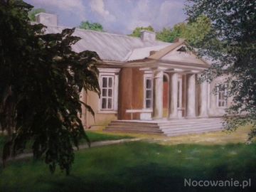 Obraz olejny na plotnie ,,Dwor Droblin,, wykonawca Elzbieta Maluch Miechowicz