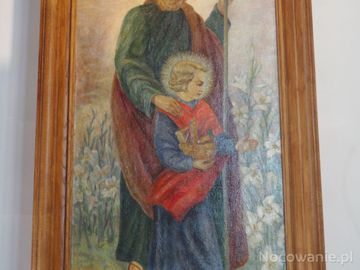 obraz przedstawiający św. Józefa z pacholęciem - dorastającym Jezuskiem, trzymającym statek, korab, arkę ciesielskiej roboty, to On będzie sternikiem wszystkich co Mu zawierzą - ubogacenie kościelne świątyni.