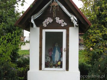 od strony górnej wsi: kapliczka przydrożna wzniesiona w XIX wieku, na murowanym cokole, na rzucie kwadratu. Od frontu posiada głęboką wnękę. Nakryta dachem trójspadowym z wydatnym zadaszeniem, kryta blachą.