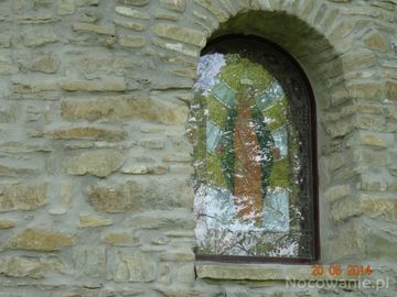 okno zamknięte półkoliście, w nim witraż - współczesne. (Żernica Wyżna)